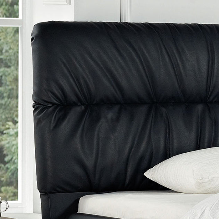 Polsterbett mit senkrechten Einzügen im Kopfteil, inkl. belüftetem Bettkasten und seitlich zu öffnende Federholzrahmen, 28 Leisten starr mit Härteg...