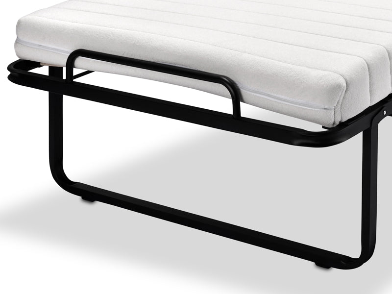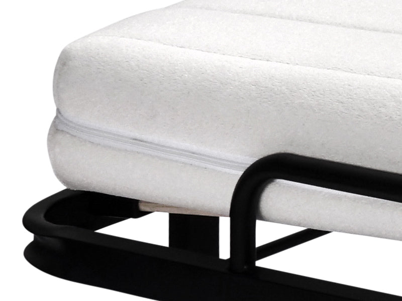 Das stimmige Design und die Gesamtqualität überzeugen. Typischerweise verfügen die BED BOX Klappbetten über durchgehende Bügelfüße am oberen und unteren Ende, sowie robuste Fixierklemmen, die das zusammengeklappte Bett absichern. Dadurch wird es auch leichter, die mitgelieferte Staubhülle darüberzuziehen. Vorteile: Einfaches umstellen, für jeden Raum geeignet, gute Luftzirkulation.