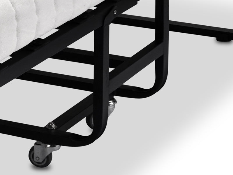 TOLLE TECHNIK. Alle Versionen erlauben ein schnelles Aufräumen. Dank kugelgelagerter Leichtlaufrollen und Klappautomatik ist eine leichte Handhabung garantiert. Mit ihren praktischen Funktionen sind die Klappbetten eine ideale kurzfristige Lösung, eignen sich aber auch für die längerfristige Nutzung.