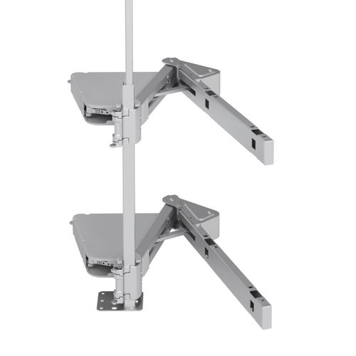 Eckschrank-Schwenkbeschlag zur Aufnahme von Tablaren.
