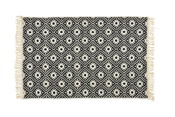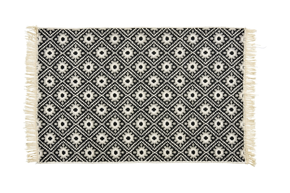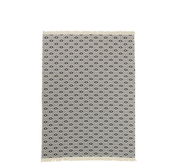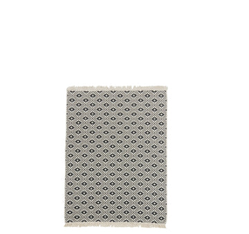 Vielseitiger Teppich aus robustem, strapazierfähigen Flachgewebe mit stylischen Fransen, der in allen Wohnbereichen tolle Akzente setzt. Auch im Bad sorgt er für eine kuschelige Atmospäre. Aus natürlicher Baumwolle und hochwertigem Polyester gefertigt, ist der Teppich besonders pflegeleicht. Er kann bei 30°C in der Waschmaschine gewaschen werden.