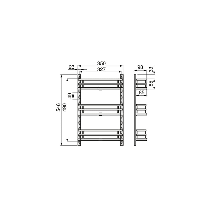 - Bestehend aus 3 Regalen und zwei Profilen mit mehreren Löchern, mit denen die Position der Regale variiert werden kann.