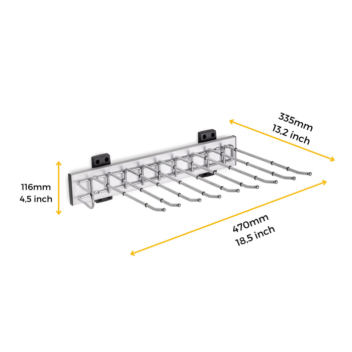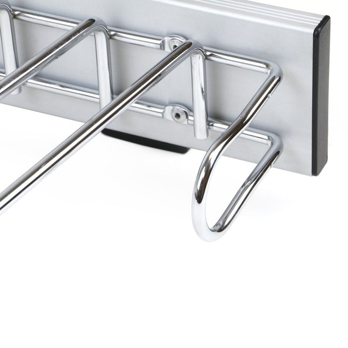 . Einfache Montage an der Seite, die mittels Kugelführungen durch Ziehen gleitet. Er verfügt über 9 Stangen mit Antirutschgummis, damit die Kleidungsstücke nicht verrutschen. Außerdem verfügt er über einen Frontgriff, um ihn einfacher herausziehen zu können. Er ist aus Aluminium mit verchromter Stahlstange und schwarzen Kunststoffhaltern gefertigt..