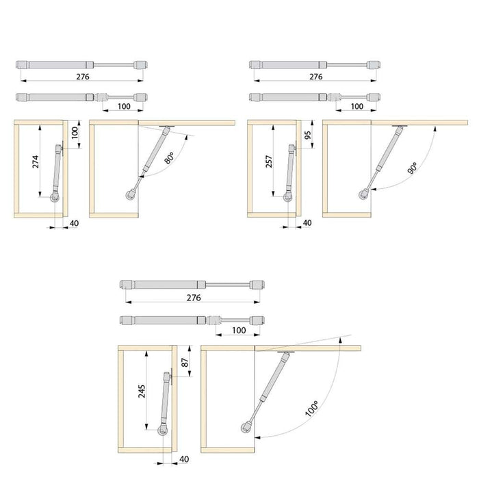 - Schiene oder Spannweite des Türdämpfer-Sets 100 mm.