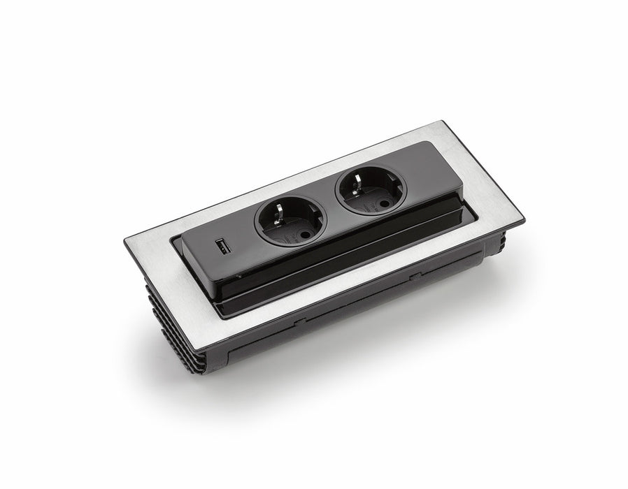 Kesseböhmer | Evoline® BackFlip-USB | Einbausteckdosenelemente | mit Schukosteckdosen | Edelstahl