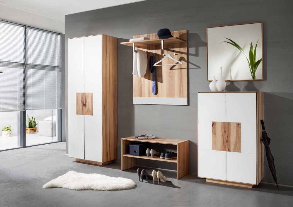 Dielenschrank; 2 Türen, 1 Hutboden (fest montiert), 1 Kleiderstange, 1 Einlegeboden