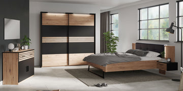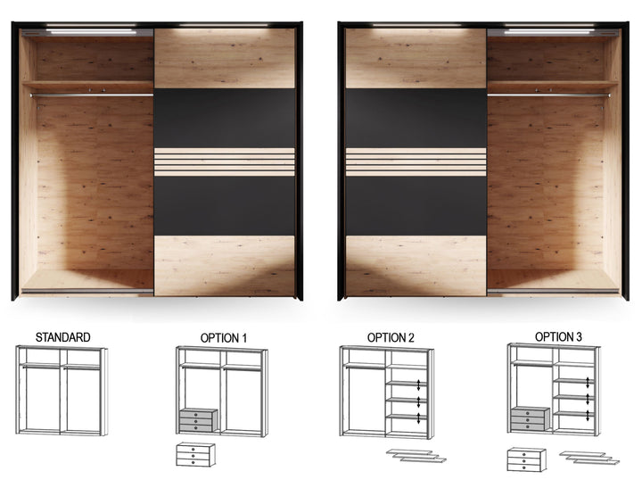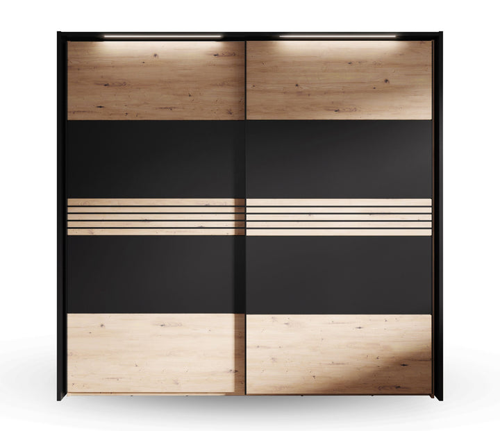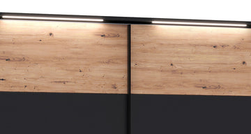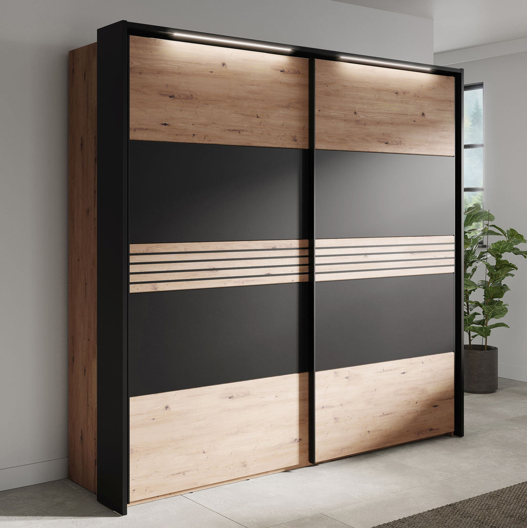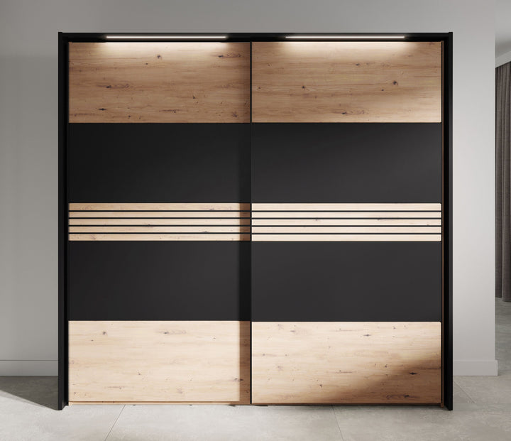 Hometrend | MELIKA 302SX Kleiderschrank | mit Passepartout | inkl. LED | Schwarz/Dekor Lamellen Artisan Eiche / Artisan Eiche