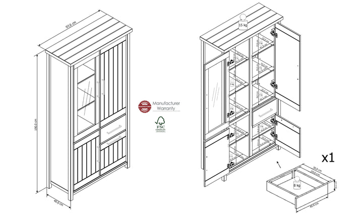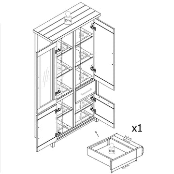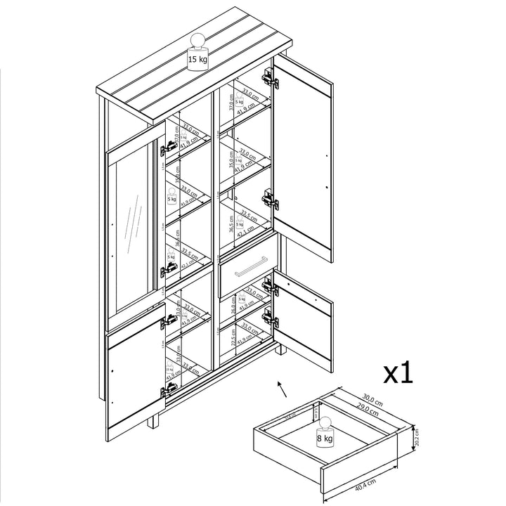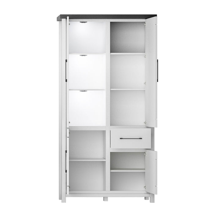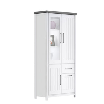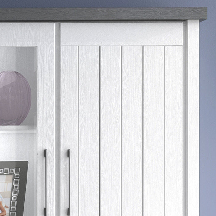 Hometrend | Miami 012-01 Hochvitrine | 4-trg | Kiefer massiv weiss Absetzung grau gebürstet