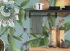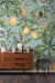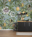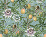 Die großen Blüten in Kombination mit den saftig gelben Früchten weckt direkt Urlaubserinnerungen. Zudem lässt der blaue Hintergrund die schönen Farben noch heller leuchten und verleiht der Tapete dadurch ein zusätzliches Urlaubsfeeling für Zuhause.