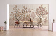 Das liebliche Motiv in zarten Rosétönen versprüht Leichtigkeit und Wärme. Die Bäume und Pflanzen sind ausgewählt auf dem Motiv platziert.