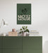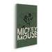 Der Keilrahmen zeigt Mickey Mouse in einem stilisierten, modernen Design. Die Silhouette von Mickey ist in einem dunklen Ton angedeutet, während der Schriftzug „MICKEY MOUSE“ in großen, geschwungenen Buchstaben den unteren Teil des Bildes dominiert. Der Hintergrund ist dunkelgrün und verleiht dem Design einen eleganten, retroartigen Look.
