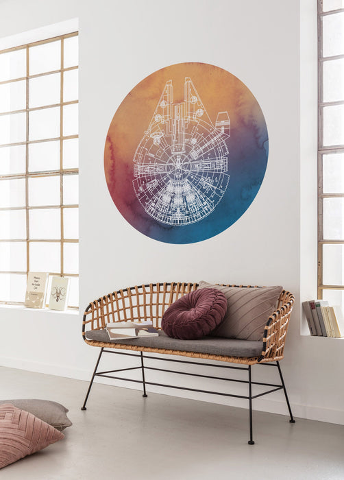 Selbstklebende Vlies Fototapete/Wandtattoo | Star Wars Millennium Falcon | Größe 125 x 125 cm