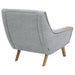 Retro-Sessel im typischen Stil der 60er Jahre. Das markant geschwungene Seitenteil wird formschön von der Armlehne und Rückenpartie eingefasst. Die Armlehnen verfügen über die klassische Auflage aus Holz und machen Helga damit zum perfekten Clubsessel, auch für öffentliche Bereiche.