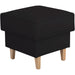 Passender Hocker zum Hochlehnsessel. Der schlicht gehaltene Hocker wird durch umlaufende Kedernähte an dem angenähten Sitzkissen aufgewertet. Die Füße sind zur einfachen Selbstmontage.