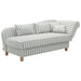 Klassische Recamiere mit praktischen Funktionen. Die Armlehne lässt sich mehrfach verstellen und bietet so eine Einzelliegefläche. Perfekt für ein kleines Nickerchen zwischendurch oder einen gelegentlichen Übernachtungsgast. Inklusive 2 rechteckigen Kissen und 2 Zierkissen. Ein großzügiger Bettkasten (148 x 65 x 18 cm) befindet sich unter der Sitzfläche. Hier lassen sich Bettdecken & Co. bequem verstauen. Die Füße sind zur einfachen Selbstmontage.