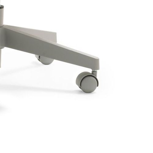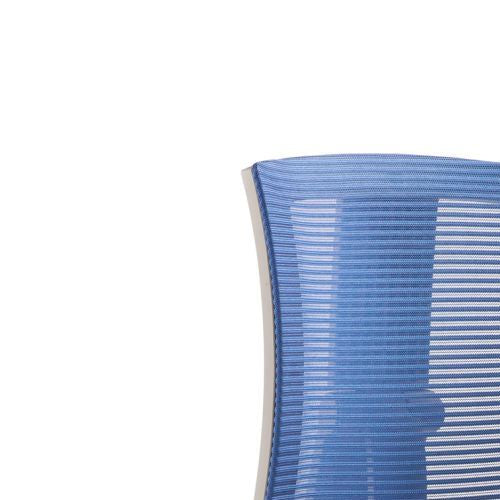 Gestell grau, Sitztiefe durch Rückenverstellung sehr leicht und stufenlos verstellbar, stufenlose Höhenverstellung durch Gasfeder, Fußkreuz Kunststoff grau, inkl. Universalrollen, Sitzhöhe 39 - 52 cm. Belastbar bis 150 kg. 3 Jahre Garantie. Sitz: Stoff schwarz / Rücken Netz blau.
