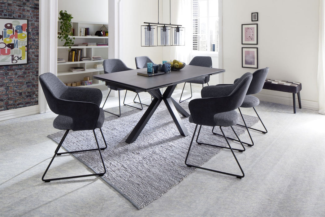 MCA | NAGANO ESSTISCH AN | 160(240)X90CM,TP:KERAMIK | ANTHRA.SÄULE:MET.SCHW MAT