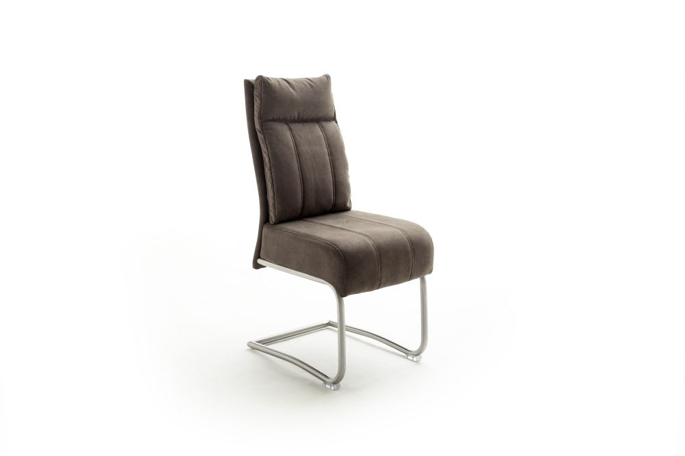 Esszimmerstühle 2-er Set mit Stoffbezug im Antiklook. Mit aufgesetzter Kissenoptik. Gestell Rundrohr in Edelstahl gebürstet. Mit Taschenfederkern Sitzpolsterung. Stuhl belastbar bis maximal 120 kg. Mit rückseitgen Griff für einfaches Handling. Stuhl Nettogewicht ca. 8 kg. Sitzmaß BxHxT 45x50x42 cm, Stellmaß BxHxT 45x101x65 cm. Die Lieferung erfolgt zerlegt inkl. Aufbauanleitung