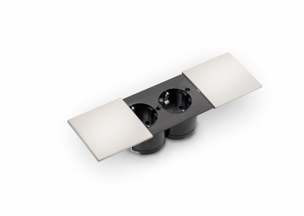 Naber | Due Doppelsteckdose | Einbausteckdosenelemente | mit Schukosteckdosen | edelstahlfarbig