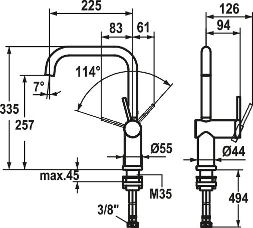 • Positionierung des Hebels nur rechts möglich (Sicherheit für Kinder: Kaltwasser bei Hebelposition vorne)