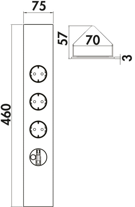 - 460 x 75 x 57 mm (H x B x T)
