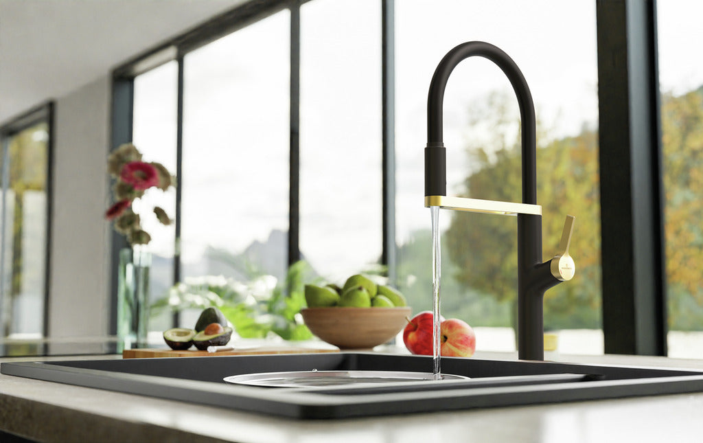 Naber | Wasserwerk Aria, Spültischarmatur, schwarz-brushed-gold, Hochdruck