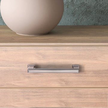 Der Möbelgriff Tanger besteht aus Zamak, sein Design ist modern und zeitgemäß. Er kann sowohl horizontal als auch vertikal angebracht werden. Eignet sich für alle Arten von Schubladenvorderseiten und Schranktüren. Der ideale Griff für Küchen-, Bad-, Wohn- und Büromöbel. Schrauben M4 zur Montage sind Teil der Lieferung. Jeder Griff ist einzeln verpackt, um zu verhindern, dass sie aneinanderstoßen oder reiben.