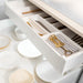 - Wir durch Schrauben oder doppelseitiges Selbstklebeband an der Vorderseite der Schublade befestigt.