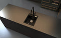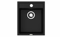 Einbauspüle. Composite, Einzelbecken. 3½" Siebkorbventil mit Drehexzentergarnitur, verchromt. 3 Vorbohrungen, Bohrungen müssen vor Ort durchgeschlagen werden.