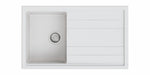 Einbauspüle. Composite, mit Abtropffläche, reversibel. 3½" Siebkorbventil mit Druckknopfexzentergarnitur, Edelstahl.