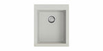 Einbauspüle. Composite, Einzelbecken. 3½" Siebkorbventil mit Druckknopfexzentergarnitur, Edelstahl. 3 Vorbohrungen, Bohrungen müssen vor Ort durchgeschlagen werden.