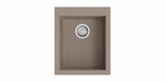 Einbauspüle. Composite, Einzelbecken. 3½" Siebkorbventil mit Druckknopfexzentergarnitur, Edelstahl. 3 Vorbohrungen, Bohrungen müssen vor Ort durchgeschlagen werden.