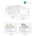 Schluss mit chaotischen Schuhhaufen: Werfen Sie Ihre Schuhe jedes Mal einfach in Ihren Schrank, sodass sich nach einiger Zeit ein chaotischer Schuhhaufen bildet? Diese schlechte Angewohnheit sollten Sie loswerden! Holen Sie sich diese 12 Schuhboxen und verstauen Sie all Ihre Schuhe sauber sowie ordentlich, bis die nächste Gelegenheit kommt, sie zu tragen.Schuhe effizient ordnen: Alle Schuhe bis Größe 44 passen in diese Boxen und können hierin staubfrei aufbewahrt werden. Benötigen Sie Ihre weißen Sandalen? Finden Sie sie auf einen Blick, öffnen Sie die Tür der jeweiligen Box und nehmen Sie Ihre Schuhe einfach heraus – Perfekt, wenn Sie es am Morgen eilig haben! Noch besser ist jedoch, dass mehrere dieser Boxen platzsparend übereinandergestapelt werden können und so für Ihren Flur, Kleiderschrank oder ein Aufbewahrungsregal gut geeignet sind.