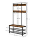 VASAGLE Großer Garderobenständer mit Sitzbank, Kleiderständer mit 12 Kleiderhaken und Schuhregal, Flurregal, Büro, Schlafzimmer, stabiles Eisengestell, Industrie-Design, vintagebraun-schwarz HSR86BX