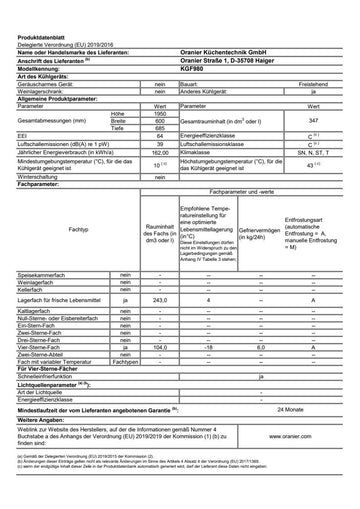 Oranier | KGF980 | Kühl-Gefrier-Kombination