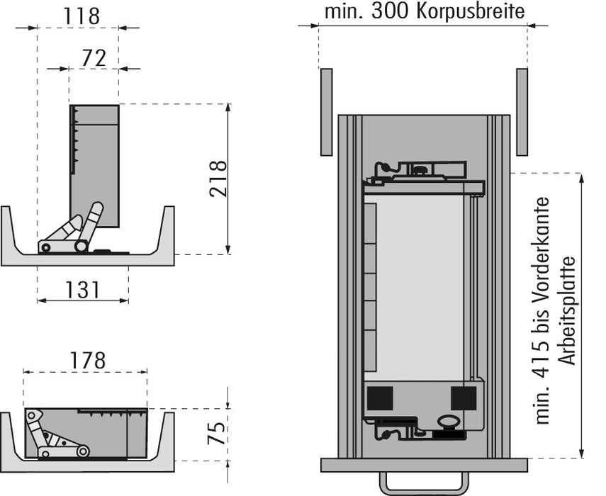 • Maße geklappt: 75 x 178 x 400 mm (H x B x T)