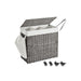 Ein ordentliches Zuhause ist ein glückliches Zuhause: Es ist natürlich sehr bequem, Schmutzwäsche nach dem Ausziehen einfach auf den Boden zu werfen. Ihr Zuhause wird hierdurch jedoch nicht nur chaotischer, Sie müssen auch Ihre Schmutzwäsche am Waschtag mühsam einsammeln. Warum probieren Sie nicht diesen Wäschesammler aus? Er verfügt über 3 Fächer und ist zudem mit einem Deckel versehen. Hierdurch können Sie Ihre Schmutzwäsche nicht nur sortiert verstauen, sondern auch im Verborgenen halten.Sie erwarten folgende Vorteile:- Die handgeflochtene Oberfläche verleiht dieser Truhe einen besonderen Look.- Durch ein robustes Metallgestell gestützt, wird dieser Wäschekorb Sie über viele Jahre hinweg begleiten.- Sie können diesen Korb bei Nichtgebrauch zusammenfalten und platzsparend verstauen.- Sie können die Taschen in der Waschmaschine waschen.- Die simple Struktur dieser Truhe macht den Aufbau zum Kinderspiel.- Dieser Wäschekorb passt perfekt in die Waschküche, ins Schlafzimmer, Badezimmer oder Wohnzimmer.