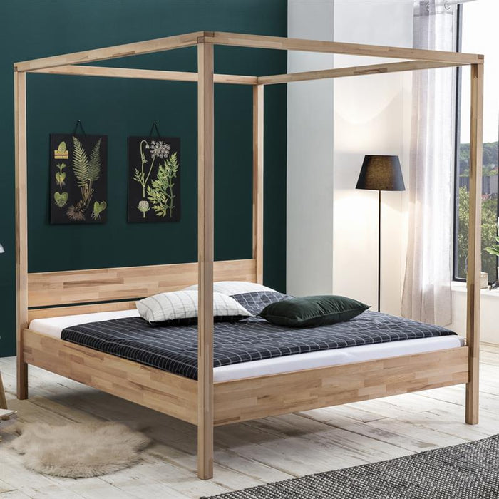WOODLIVE | Sky | Massivholzbett | Himmelbett | Kernbuche | Natur & Weiß